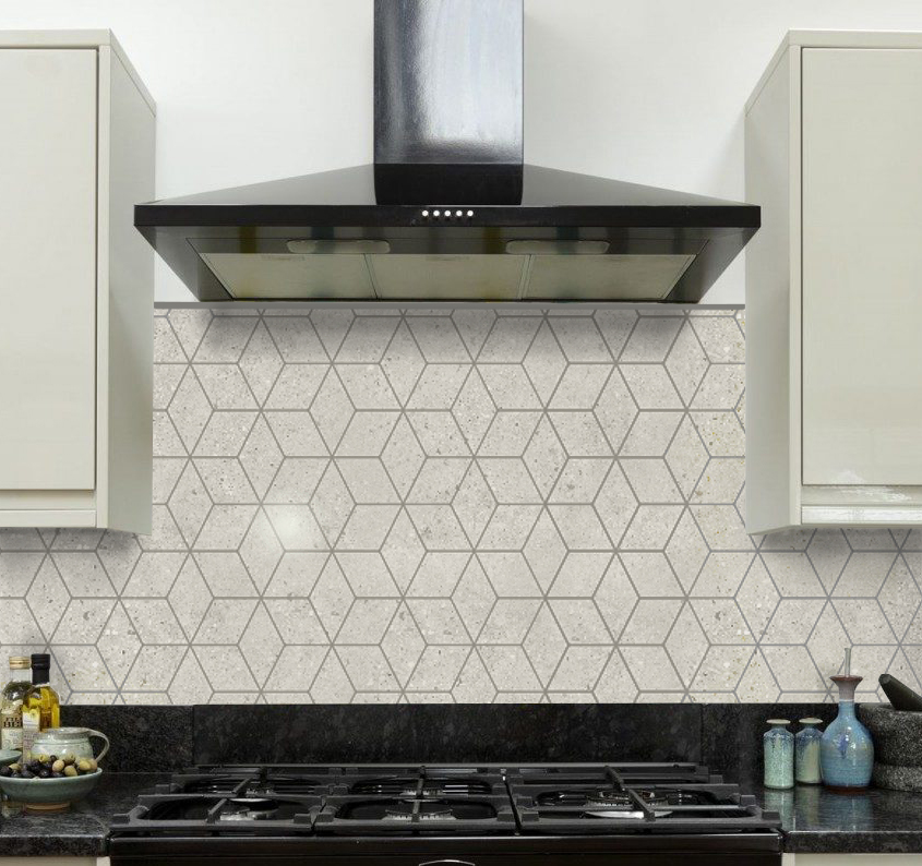 The Frammenti Collection is a concrete-look porcelain tile and mosaic sheet with four colours – white, pearl, ash & black + three finishes – Matt R10, Lappato & External R11.