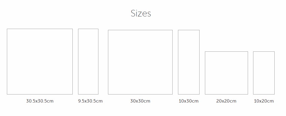 SIZES: 305x305, 95x305, 100x300, 200x200, 100x200